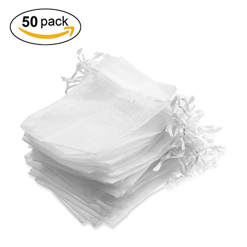 50 Pack 4x5 Inches White Organza Bag,Candy Gift Pouch,Chocolate Gift Bag Wedding Bags,Sachet Bag Sheer Organza Pouches,Favor Jewelry Bags