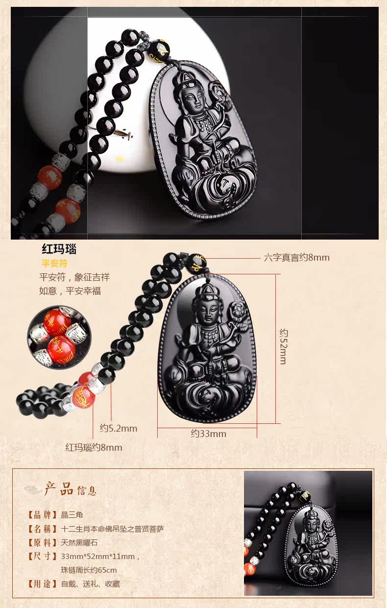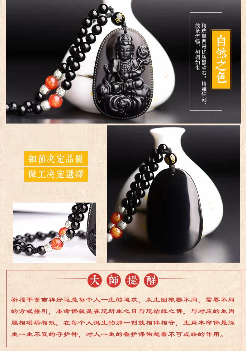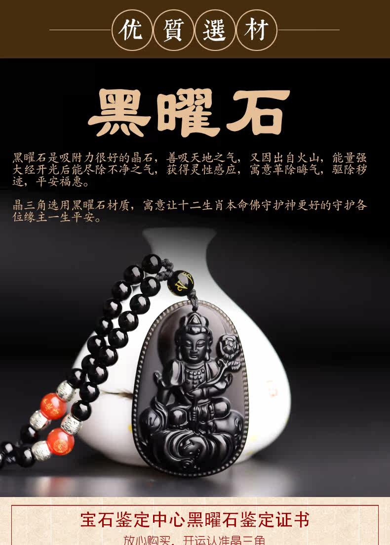 开光天然黑曜石普贤菩萨吊坠十二生肖属龙蛇本命佛守护神男女项链