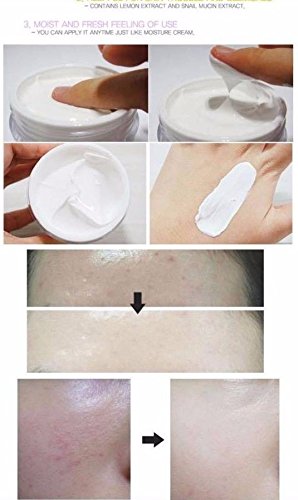 -. Feature : Chaldduk Whitening Cream travel size 10g. ( Whitening Cream snails ) Authentic Made In Korea 10g / Tip for your uneven skin color Chaldduk Whitening Cream !! Not only for the body but also can be used for the face . With extracts from Lemon and snails Oily help improve skin pigmentation , skin becomes toned and refreshed . With body just use 2 boxes will see improved skin tone / For lady who loves make up and cant leave without make up. You can use this Instant Whitening Cream to replace for your current make up without any side effect. Whitening Cream will not only help your Skin Smooth and whitening instantly but also help your Skin whiten days by days. Your dark spot, age Spot ,acne scars,blemishes, uneven skin tone,wrinkle will be all covered thanks to Whitening Cream. Work Great for all Skin type and any Skin color. / Easy way to have an even Skin Tone and beautiful Skin as Korean Movie Stars and other Super Stars. Only takes 1 minute for a confident ,natural healthy looking and even skin tone whenever going out with friends. Please see the Real before and After Picture from our customers and demonstration below for more information. / A cream will be used to support the perfect white, bright white and clear Skin. Formula white nursing super-efficient with powerful whitening ingredients for a radiant white skin , smooth on each day . Great anti-aging skin firming, help, reduces wrinkles and fine lines on the skin. Nourish and protect the skin from free radicals, improves elasticity. Helps increase the density, moisture holding capacity, firmness bring soft skin as smooth baby skin . Protect your skin from the harmful effects of the sun.Please return unopened,unused package to receive a refund. We can't issue refund with used and opened package for cosmetics products.Direction: Apply whitening cream in the morning + Sun block SPF 50++ ,or apply whitening cream before bed time at night .