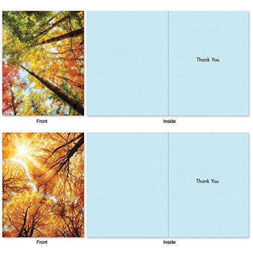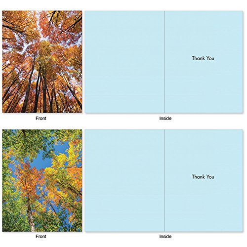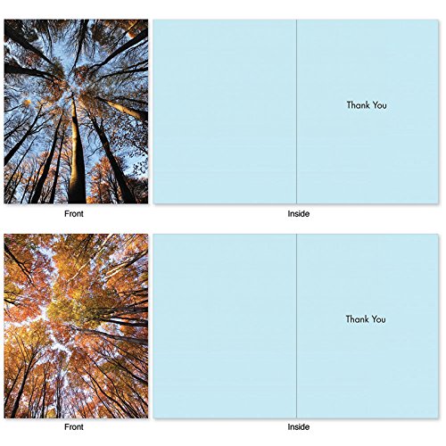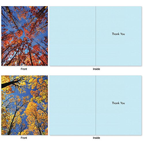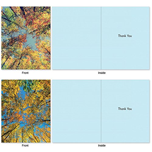 M3006 Over The Top: 10 Assorted Thank You Note Cards Featuring Colorful, Nature Inspired Photography Of Autumnal Trees Reaching Skyward, w/White Envelopes.