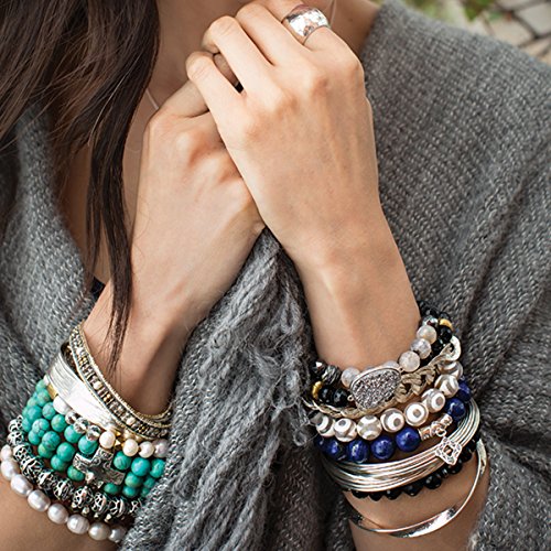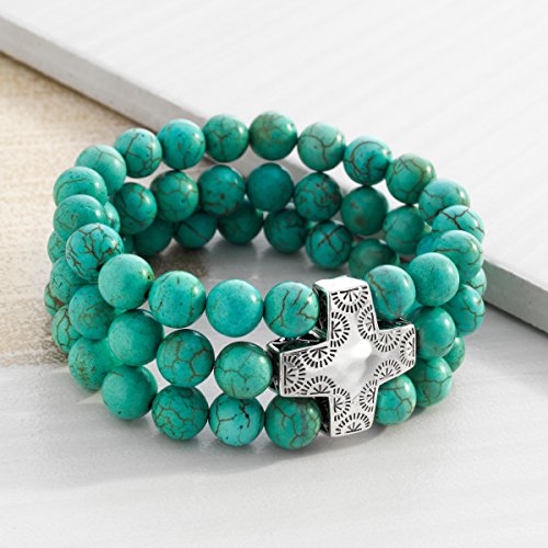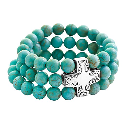 An iconic polished, sterling silver cross among a bevy of howlite beads shows your commitment both to high style and a higher power. The Devotion Stretch Bracelet creates a beautiful contrast against a coral sundress and strappy wedge sandals. Better yet, combine it with other Howlite accessories for a look that's super summery and oh-so-Silpada-ish. The green-blue round-shape howlite beads boasts a total weight of 308 ct. Bracelet measures 7 by 1 inches with an easy slip-on design. Piece comes with a ".925" sterling silver stamp as a symbol of guaranteed product quality