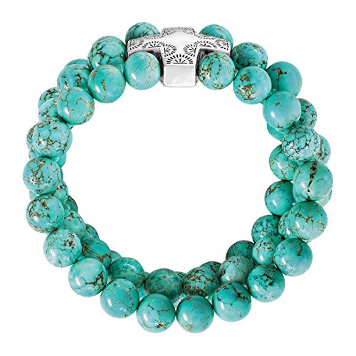 The Devotion Stretch Bracelet features 58 sea-green howlite beads totaling 308 ct strung into three strands, creating a beachy, polished look perfect for any occasion
