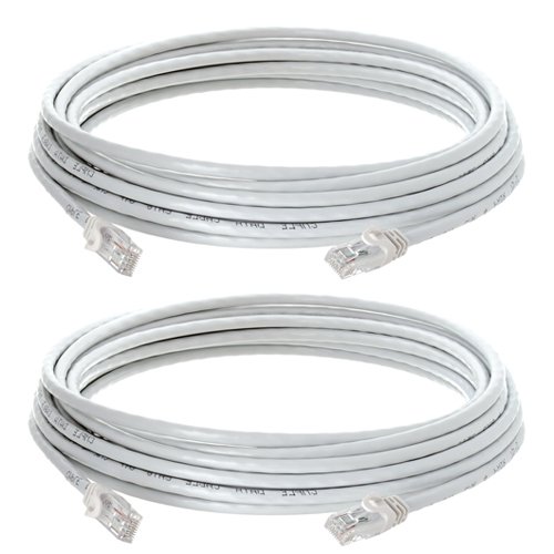 Cat6 Ethernet Cable - 15 ft White - Gold Plated Contacts Male to Male Patch Cord (2 Pack)
