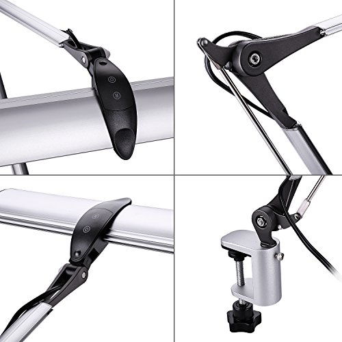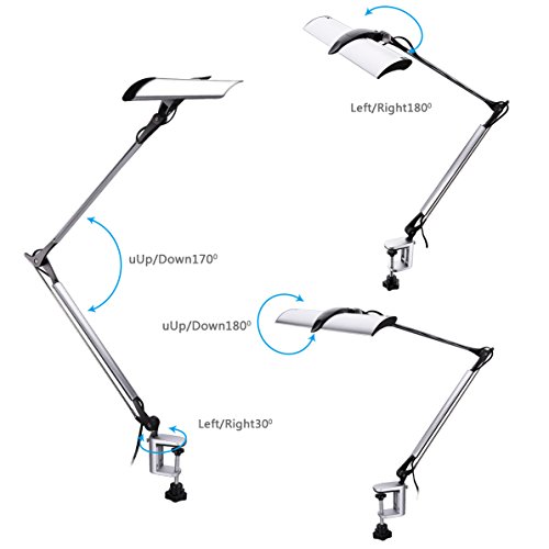 - ★PROFESSIONAL LED SWING ARM LIGHT:Extendable and adjustable long arm provide you infinite flexibility also allow light cover large table. Install with strong metal LED Lamp Clamp. No base design, help you save more desktop space. Best for Reading, Home Office, Art Workshop, Showrooms, Bookstores, Students Desk, etc.