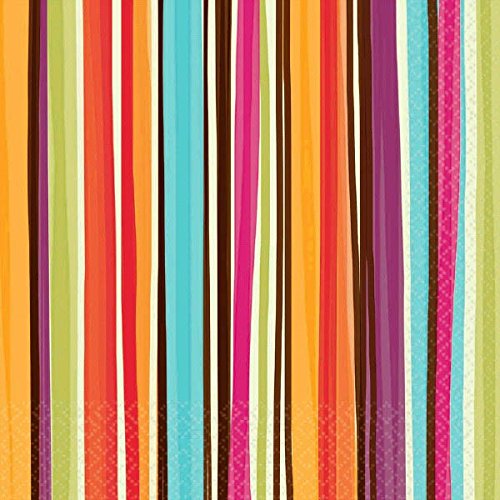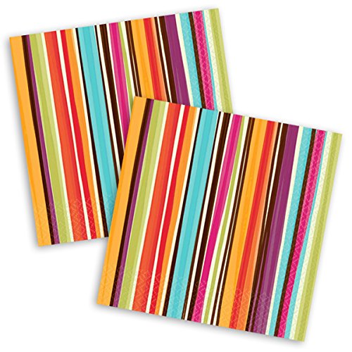 Amscan Disposable 2 Ply Lunch Napkins in Stylish Stripes Print (16 Pack), 6.5 x 6.5", Multicolor