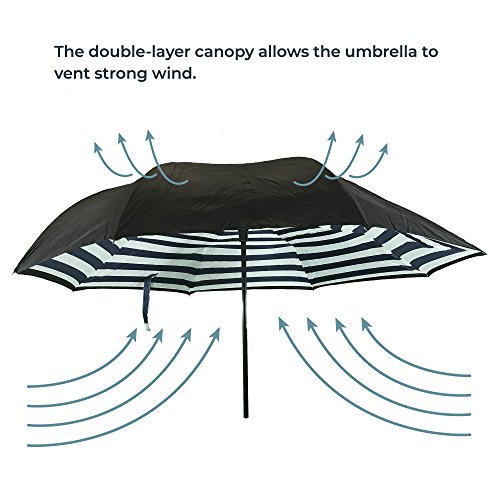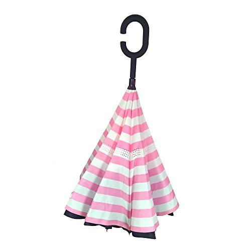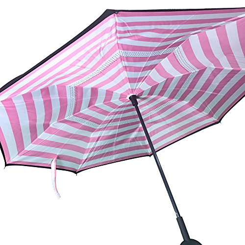 -. Feature : SUPERIOR PERFORMANCE - This inverted umbrella is made with water repellent pongee fabric, premium carbon fiber material which is sturdy, corrosion resistant. The double-layer canopy design protects against UV rays. / DURABLE WITH SMART DESIGN - The double layer canopy allows the umbrella to vent strong wind while the innovative 'drip-free' design keeps users dry. The smart design allows the user to have the umbrella open when entering or exiting the car, while the folding mechanism keeps the wet cloth away from the user and keeps home and car floors dry. / EASY TO HANDLE - The C-shape handle loops easily over your arm or wrist allowing you to carry a child, use a cell phone, hold a dog's leash or carry bags. / SPACE SAVING - Don't crowd your hallway with open umbrellas that need to dry. This umbrella is self-standing, when closed, and was designed to dry quickly and easily in the closed position. / COMMITTED TO YOUR SATISFACTION - Gathering Place HomewareTM brand is 100% committed to your satisfaction. If for any reason you are not happy with your order, contact us. We will make it right for you!