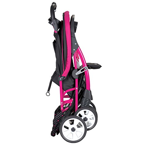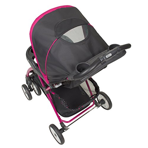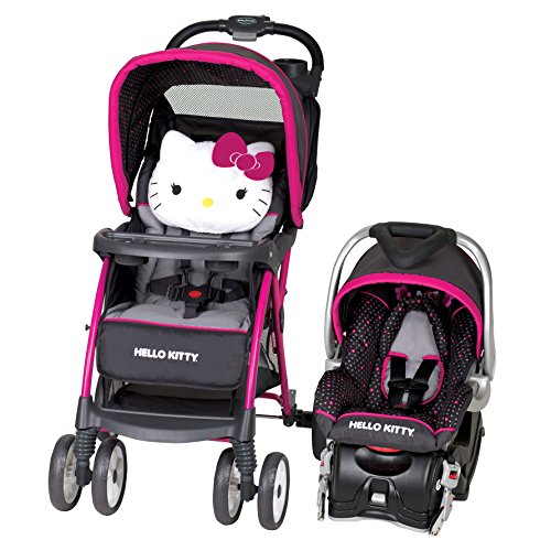 The Baby Trend Hello Kitty Travel System will get you and your little one around in high style. Hello Kitty is sure to keep your little one happy and this travel combo offers all the safety and convenience features you need. This Venture travel system includes a Flex-Loc Infant Car Seat with base, which has a large, soft head support and EPS energy-absorbing foam for superior side impact protection. For mom and dad, the stroller has a peek-a-boo window in the canopy, a covered parent tray with two deep cup holders and a large storage basket. For your child, the Hello Kitty stroller has a multi-position reclining seat, three-point safety harness, adjustable sun canopy and large tray with two cup holders. Birth to 40 lbs. 20.5"W x 38"L x 42" H.