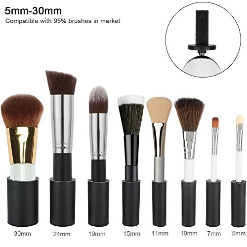 - ♥Fits Your Brushes - 8 different sizes to fit different brushes, suitable for 95% makeup brushes in the market. It means you can clean many brush sets with this automatic brush cleaner.