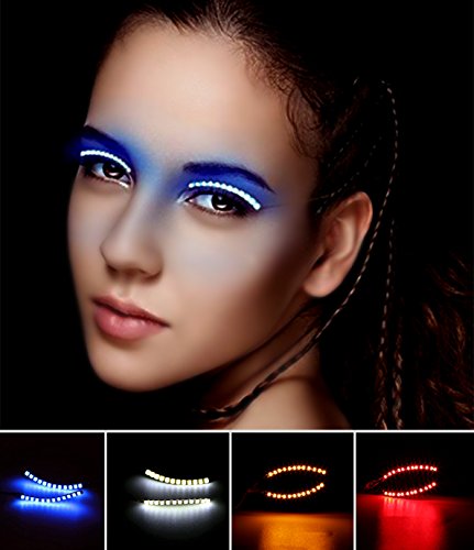 LED Eyelashes 4 Colors Flashes Luminous Eyelid Tape Glowing False Eye lashes(Blue, Yellow, White, Red))
