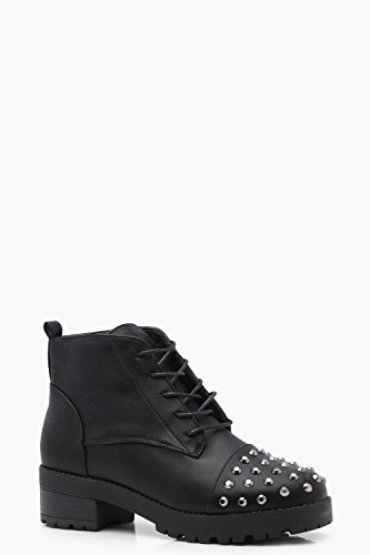 (Boohoo)/Women's/Boots/DIRECT FROM USA/Boohoo Womens Lillie Studded Toe Hiker Boot