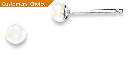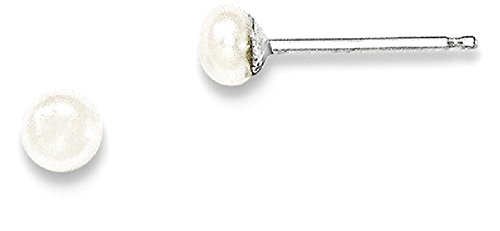 ICECARATS DESIGNER JEWELRY 14K WHITE GOLD 4MM WHITE BUTTON FRESHWATER CULTURED PEARL STUD BALL BUTTON STUD EARRINGS