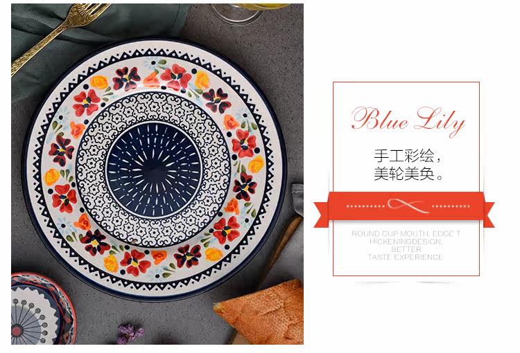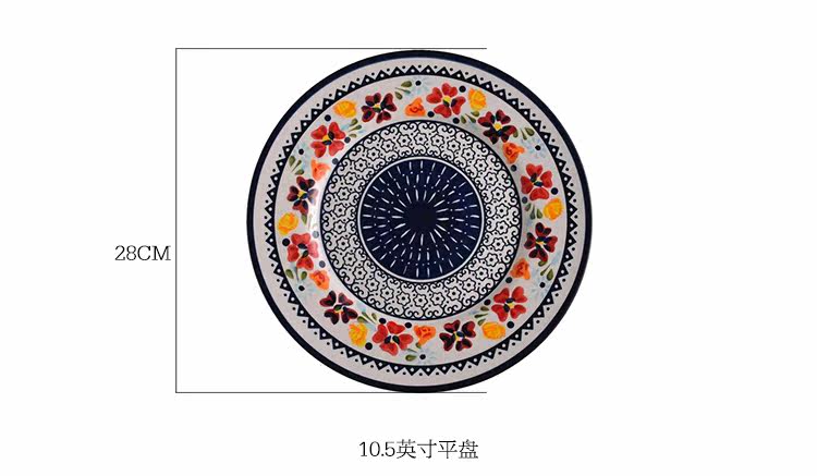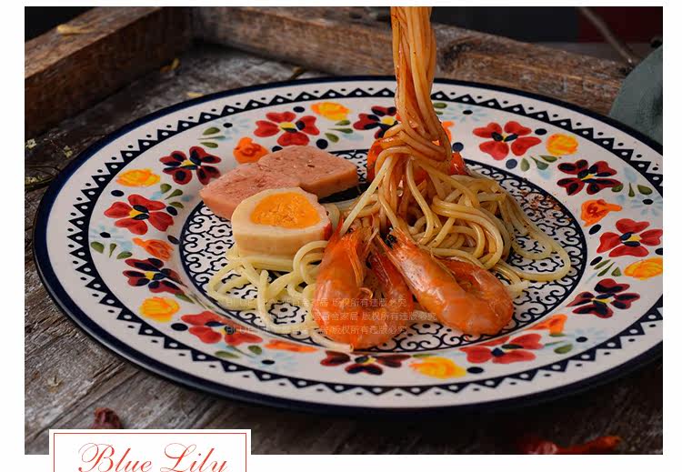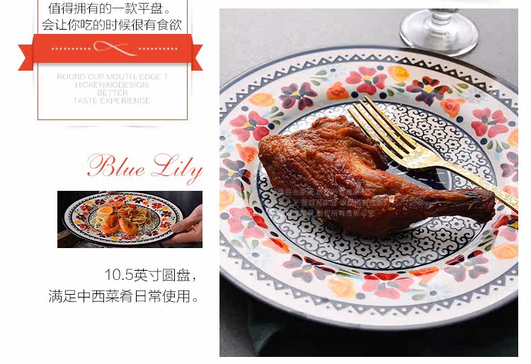 美式乡村陶瓷西餐牛排盘平盘水果盘圆形早餐盘子意面盘