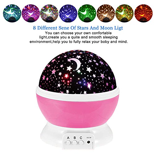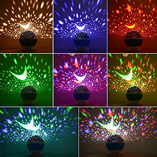 - ❀4 LED light 4 mode 9 light color changing, 360 degree rotation, movable hemispherical cap, star - month projector or colored night light