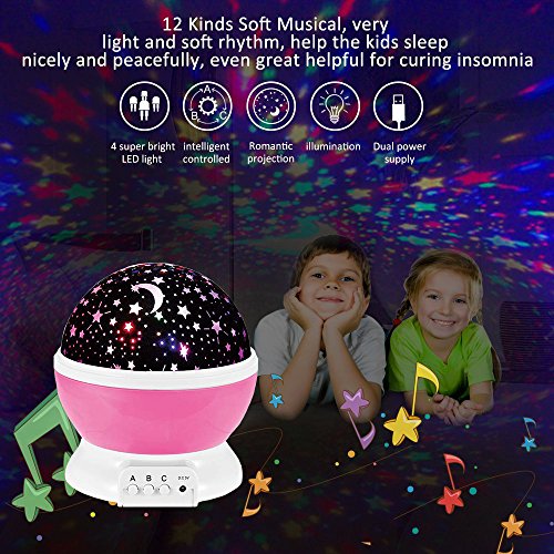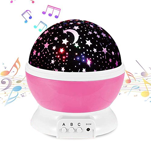 Music Night Light Projector Lamp Baby Star Projector 360 Degree Rotating 9 Multicolor Changing With Rechargeable Battery,12 Soft Light Music for...