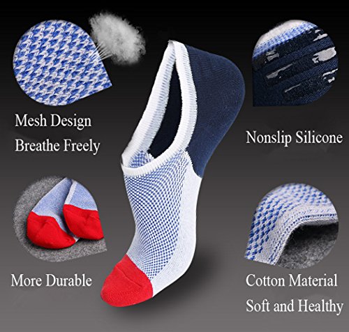 -. Feature : Material:75% cotton, 13% polyester,2% spandex / 100% Non Slip Guarantee,3D design heel,Soft,breathable and comfortable,well perfect for sport / Boyfriend wind design no show liner sport socks would perfectly matches with your sport shoes,sneakers, boat shoes, loafers, and so on / 3/6 pairs pack no show liner socks with different bright color, you can wear different colors in everyday / Easy to wash - machine wash or hand wash