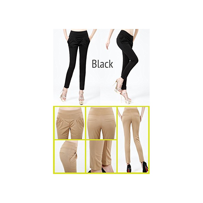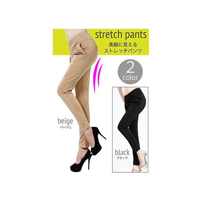 SIMONNE(시몬《누》) 미각(아름다운 다리) 메이크 스트레치 팬츠 주름 들어감 테이퍼 드 웨스트 고무 (05:블랙 XXL사이즈)