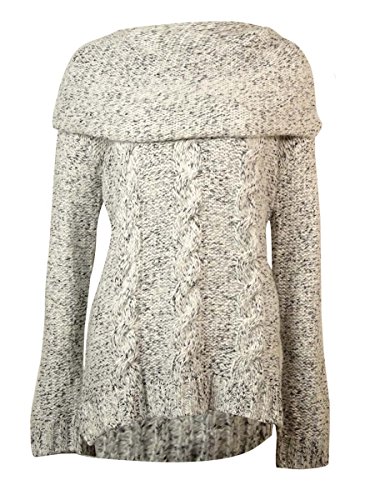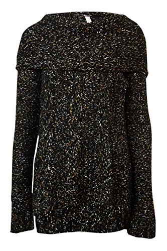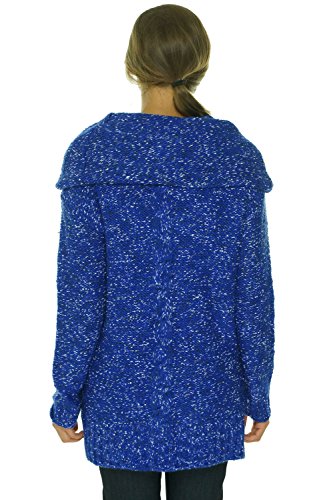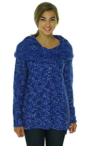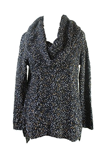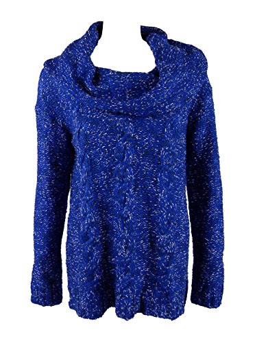 Kensie Womens Striking Blue Combo Cable Knit Cowl Neck Marled Sweater L