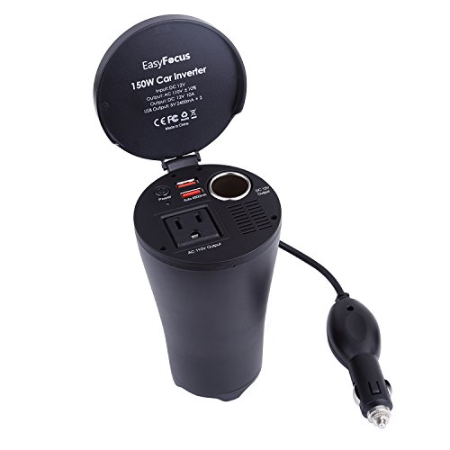 150W Car Power Inverter DC 12V to 110V AC Outlet EasyFocus Cup Holder Car Converter Adapter with 4.8A Dual Smart Quick USB Charger