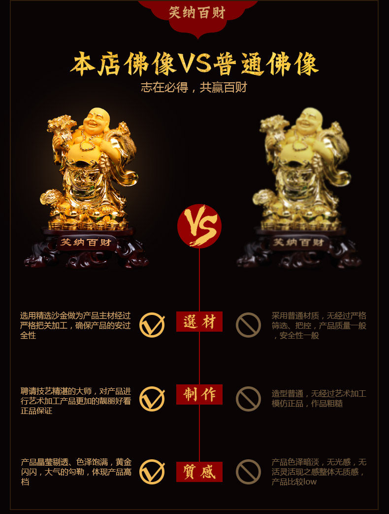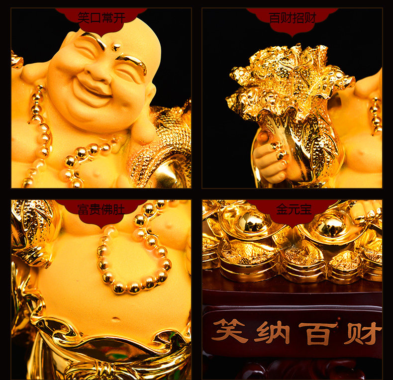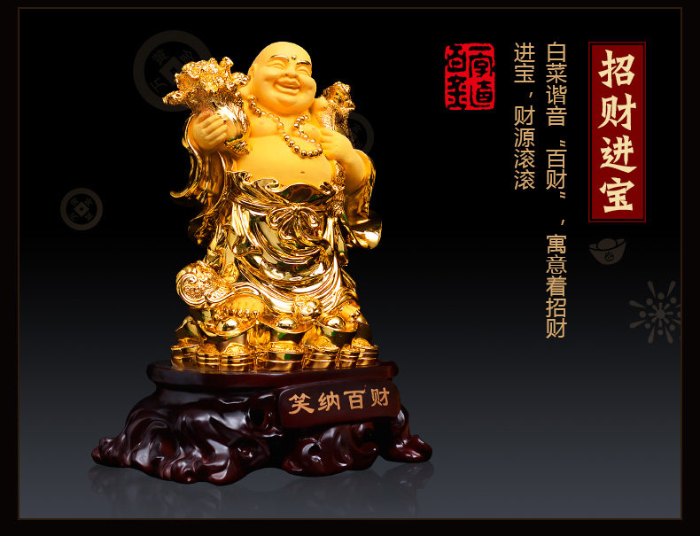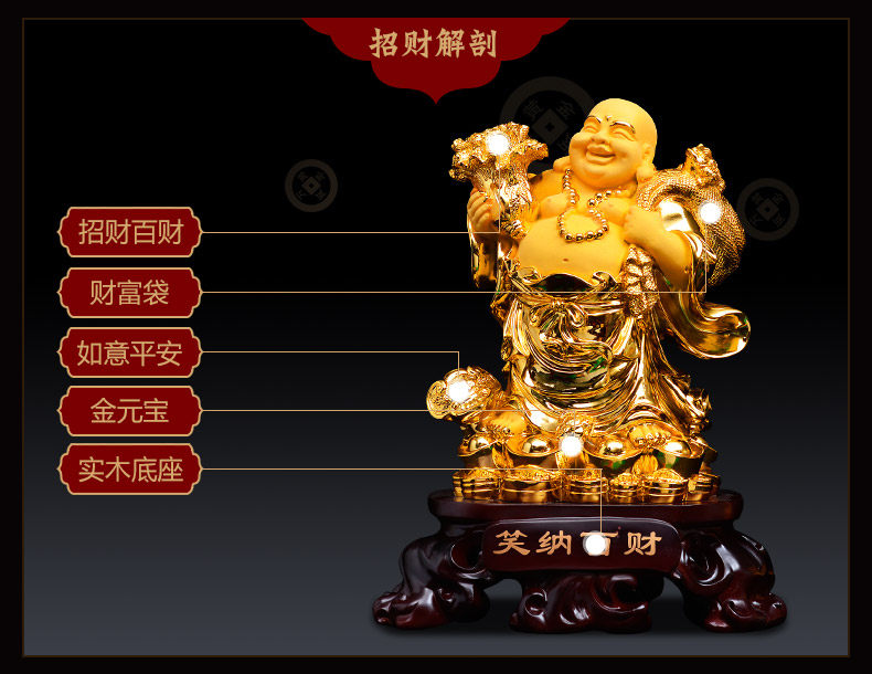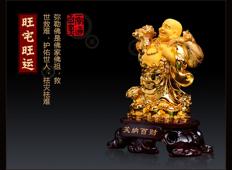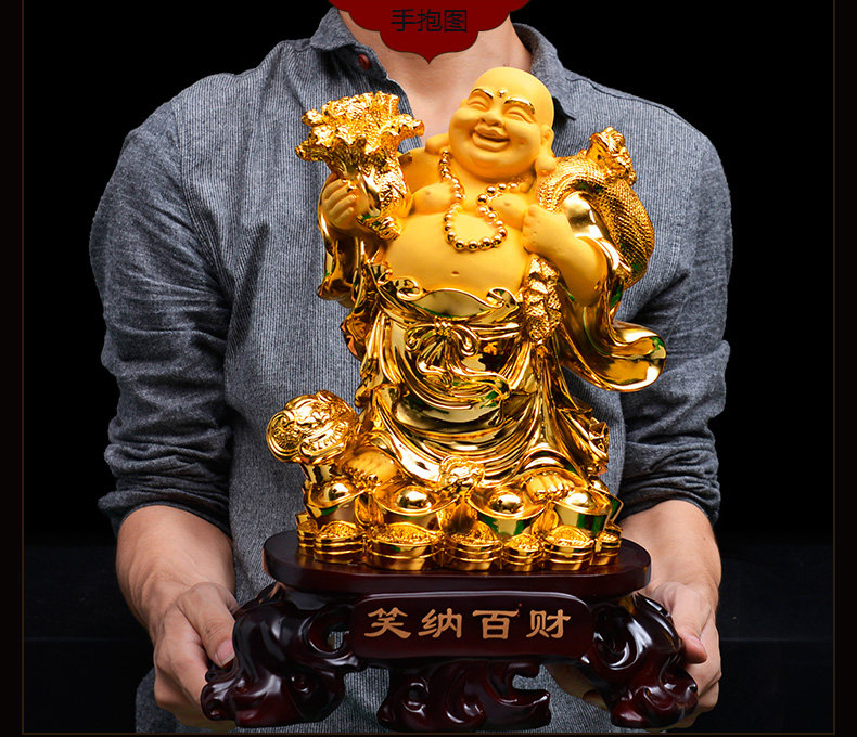 笑纳百财弥勒佛摆件 笑佛大号招财客厅装饰品开业送礼摆设