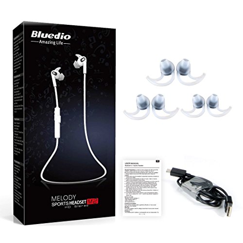 Title : Bluedio M2 Melody Hurricane Series Sports Bluetooth headset/Wireless headphones earbuds/ 4th generation in-ear music earphone Built-in microphone Sweat proof. White