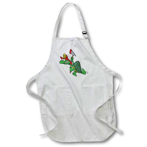 3dRose apr_104057_1 Funny Fireman Firefighter Turtle Cartoon-Full Length Apron with Pockets, 22 by 30-Inch, White