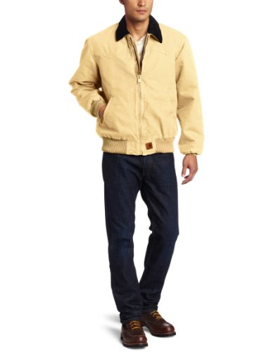 Cut in a classic western style, our sandstone santa fe jacket is made of 12-ounce, 100% cotton sandstone with a collar trimmed in corduroy. for warmth, it features quilted-flannel lining in the body and quilted-nylon lining in the sleeves. there are two inside pockets and two lower-front pockets. the cuffs and waist are rib-knit to keep out the cold, and pleated elbows enhance movement.Feature