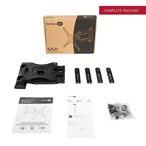 -. Binding : Electronics -. Brand : Seneca AV -. Color : Black -. EAN : 0800152712734 -. Feature : Fits flat panel TVs from 32" to 47" / Extends up to 20" (50 cm) from the wall / Pans up to 135 Degree to provide maximum viewing angle / Easy to reach tilt system provides a +8 Degree/5 Degree angle / VESA hole patterns from 100 x 100 to 400 x 400 -. Label : Kanto Distribution Inc. -. Manufacturer : Kanto Distribution Inc. -. ManufacturerPartsWarrantyDescription : Two Year Warranty -. Model : SA21 -. MPN : SA21 -. NumberOfItems : 1 -. PackageQuantity : 1 -. PartNumber : SA21 -. ProductGroup : Speakers -. ProductTypeName : AV_FURNITURE -. Publisher : Kanto Distribution Inc. -. Studio : Kanto Distribution Inc. -. Title : Seneca AV SA21 Full Motion TV Mount for 32"-47" Flat Screen Displays - 20" Extension, 135 deg Swivel, 13 deg Tilt - VESA Compliant -. UPC : 800152712734 -. Warranty : Two year warranty