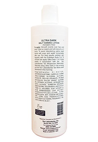 Sun Laboratories was established in 1983 and is family owned and operated. It is a company built on the premise of creating a line of beauty products that utilizes an easy application process as well as resulting in glowing skin, free of harmful rays from the sun. 1)Elbow, knees, and knuckles generally have dryer skin. Therefore, those areas will absorb more sunless tanner for legs and arms. To avoid this, apply a small portion of hand and body lotion to those areas. Your skin will not be able to absorb the sunless tanning product very well and that's what you want in these areas. 2)If you use before and after stickers, put them anywhere on the body before applying. 3)Put on your tanning glove that comes with this product. 4)When applying the overnight self tanner, rub in a circular motion to avoid streaking. 5)After application, wait a minimum of five hours before showering or getting in the pool. 8 hours for optimal results. 6)The self tanner has a cosmetic bronzer to give you a visual of where you have applied it. While showering, you will notice the cosmetic bronzer will wash off, leaving behind the true self tanning color. 7)Color will continue to develop even after the eight hour period after the application.