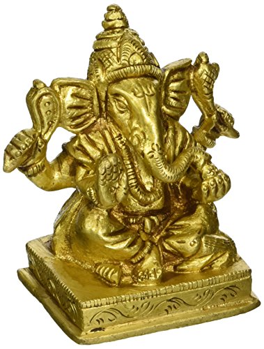 Lord Ganesha Enjoying Modak (Small Statue) - Brass Sculpture