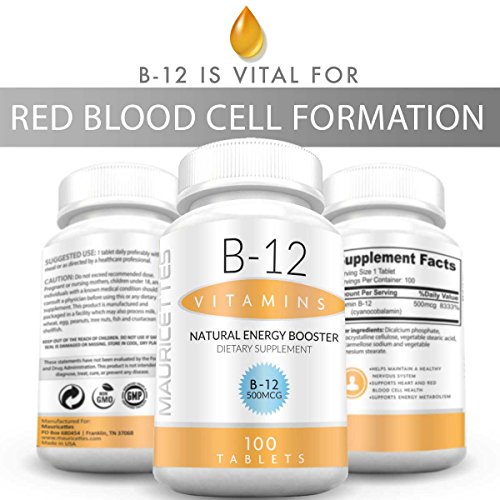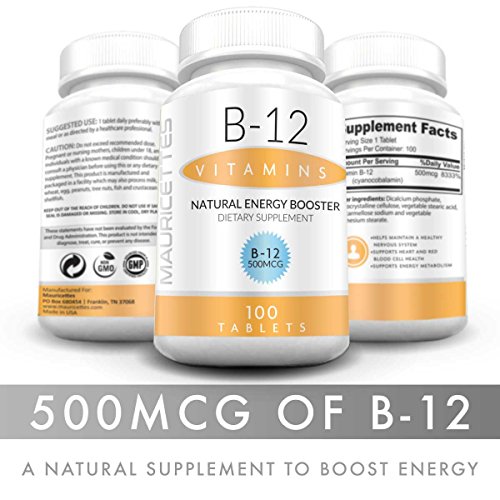 -. Title : Vitamin B12 500 mcg Supplement All Natural Pure Energy Vitamins or B 12 Deficiency Best For Women and Men From Mauricettes