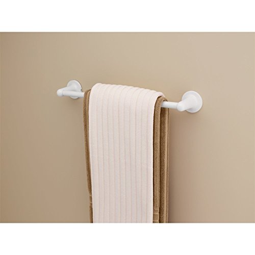 - This 24" towel bar keeps towels off the floor in a white finish that will open up your bathroom.