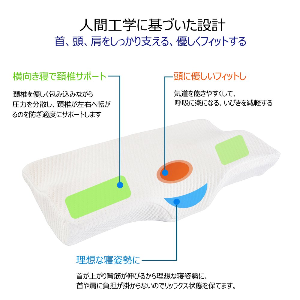 Design based on ergonomics, low rebound without burden on the body, head, neck, shoulder firmly supported, shape designed to keep the posture can be used as comfortable.