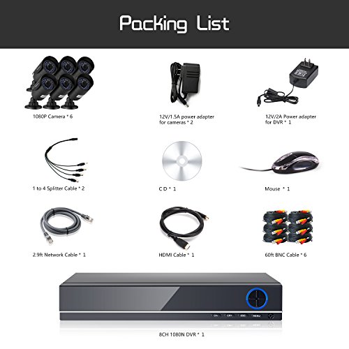 -. Binding : Electronics -. Brand : IHOMEGUARD -. Color : Clear -. EAN : 0606345630669 -. Feature : Alarm Push Function on APP,View Camera Freely. See Live Video Using Your Computer,Tablet,or Mobile Phone from Anytime Anywhere. / 1080P AHD Cameras Offer 2.0MP Great Qaulity Video&Image. More Clear Daytime and 30M 100ft Night Vision. / Motion Detection Recording Allows You Save More Hard Drive Space if Hard Drive is Installed. / Outdoor Weatherproof Metal Housing Camera with Elegant Black Color.1080P HDMI Output Allows You View on HD 1080P Monitor. / FCC Certified with UL Compliant Power Adapter, 3 Years Warranty and Life Time Tech Support! -. Label : IHOMEGUARD -. Manufacturer : IHOMEGUARD -. Model : IHG-1080-86 -. MPN : IHG-1080-86 -. PackageQuantity : 1 -. PartNumber : IHG-1080-86 -. ProductGroup : Photography -. ProductTypeName : CONSUMER_ELECTRONICS -. Publisher : IHOMEGUARD -. Studio : IHOMEGUARD -. Title : IHOMEGUARD HD 1080N Home Security Camera System with 6PCS HD 1920TVL 2.0MP Outdoor CCTV Weatherproof Cameras with 8 Channel AHD DVR Video Surveillance Kit no Hard Drive -. UPC : 606345630669