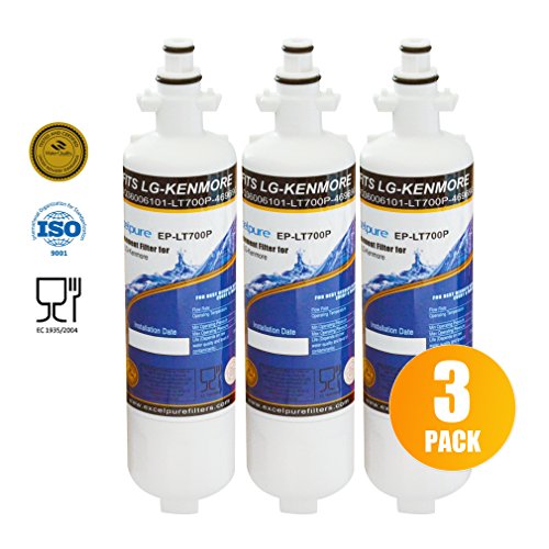 -. Feature : COMPATIBILITY: Compatible W/ LG LT700P, ADQ36006101, ADQ36006102, Kenmore 469690, Water Sentinel WSL-3 / EFFICIENCY: The filter contains natural Coconut Shell Activated Carbon, which removes 99% Chlorine and odor. / ADVANCED-TECH: "Black Miracle" Technology is used for producing the carbon block filter inside. The activated carbon block filter also helps remove heavy metals, such as Lead, Chromium, Arsenic, improve taste, and deliver fresh and clean water. / PROTECTION: We are using BPA FREE plastic materials, which are also heavy metals FREE and tested by WQA for material safety. All Excelpure filters are UV sterilized before packing. / QUALITY: High-tech water purification plant production. The quality of the filter is the same as the branded filter but costs less/6 months/300G (depends on water quality and level of contaminant).