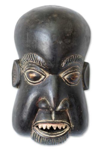 NOVICA Decorative Ghanaian Wood Mask, Black, 'Executioner'