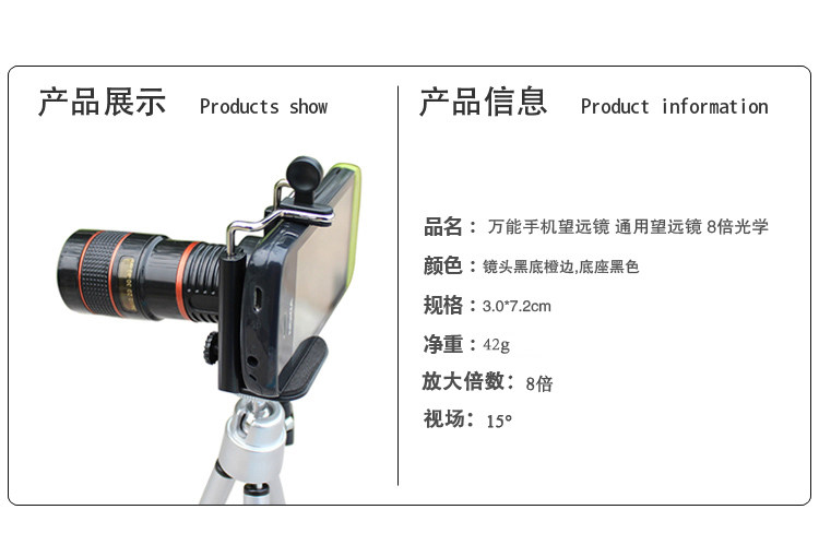 5, tripod adapter can be used with tripod This product is universal universal mobile phone binoculars, please correctly understand its function, you can zoom optical telescope, manual zoom