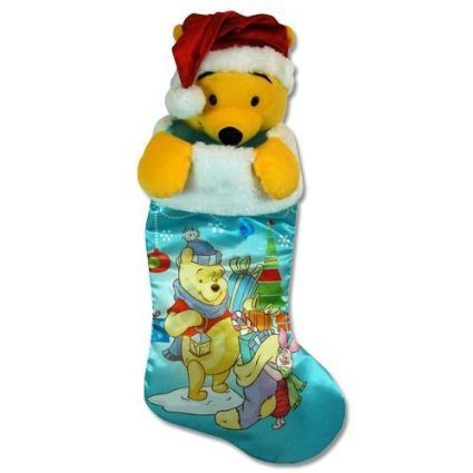 POOH 18" SATIN STOCKING FULLY PRINTED WITH PLUSH HEAD HANGER