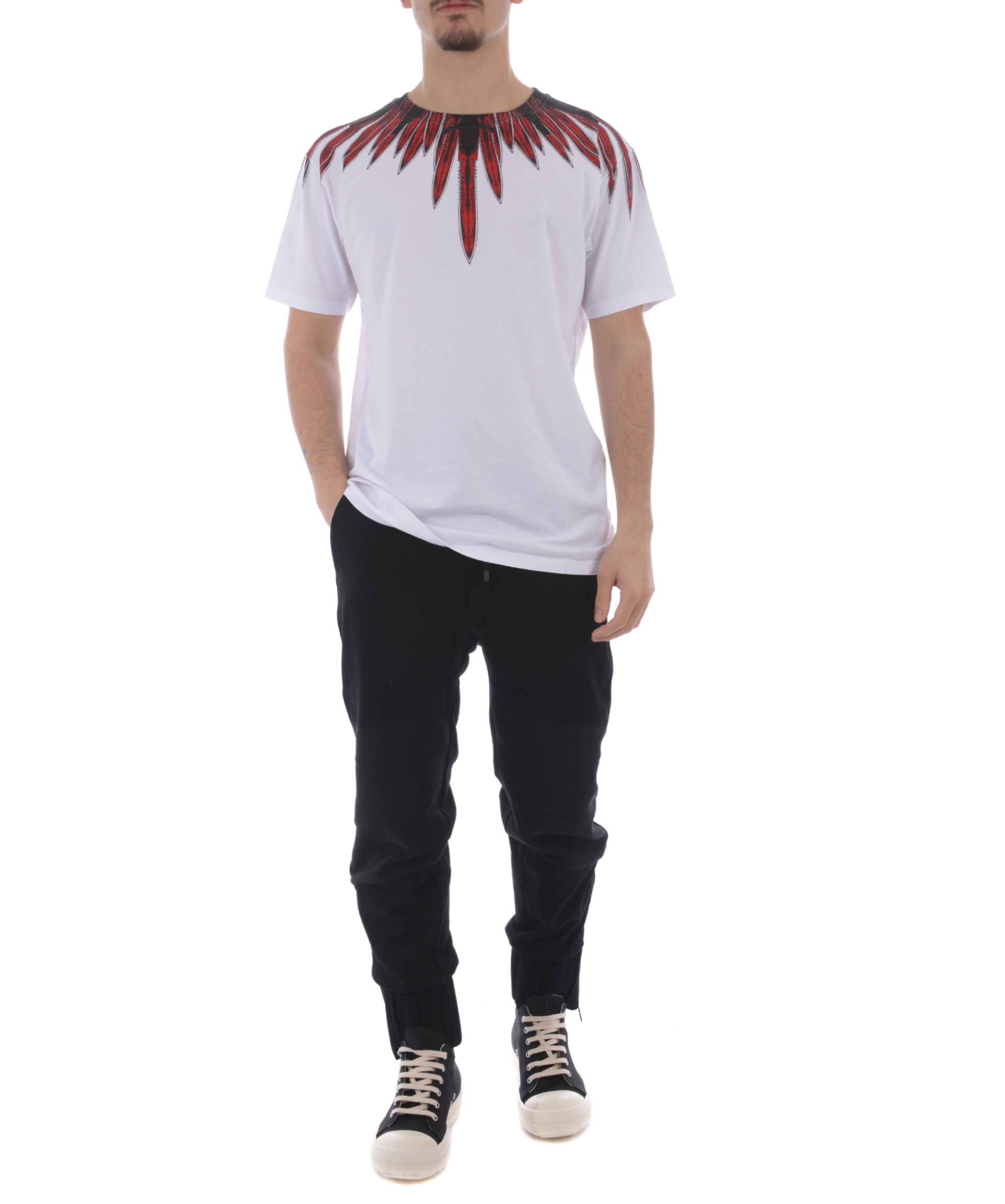 Teodoro T-Shirt from Marcelo Burlon: White Teodoro T-Shirt with round neck, printed design on the front and on the rear, short sleeves and a straight hem.