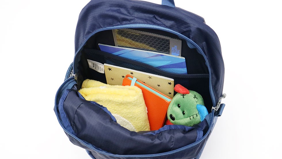 水筒やタオル、ちょっとした着替えなども収納できる、充実の収納力をもち、大きなメッシュポケットはノートや本の収納にも便利です。また、IDポケットも設けており、連絡先などを入れておくことができます。