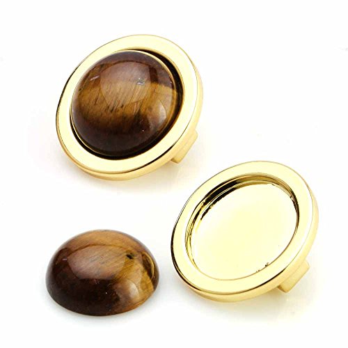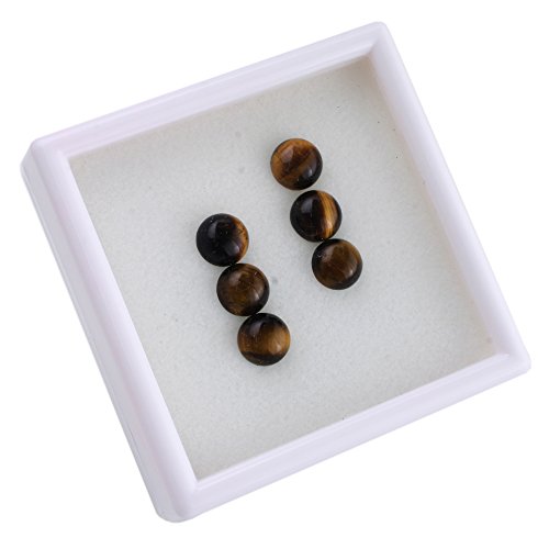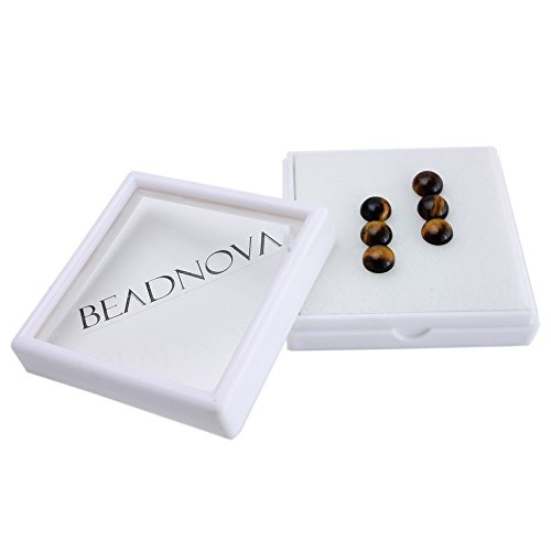 BEADNOVA 6 Pcs 8mm Natural AAA Grade Yellow Tiger Eye Beads Semiprecious Stone Gemstone Round Flat-Back Cabochons Beads Fashion Jewelry Beads Findings Set With Free Jewelry Packing Box