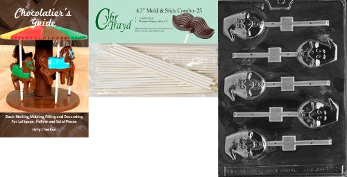 Cybrtrayd 'Ghost Head Lolly' Halloween Chocolate Candy Mold with 25 4.5-Inch Lollipop Sticks and Chocolatier's Guide
