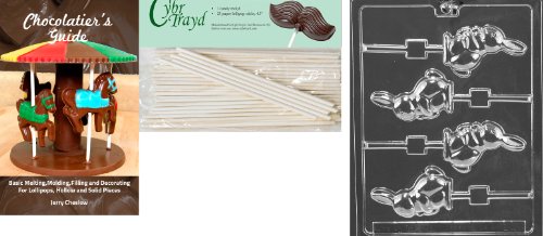 Cybrtrayd 45St25Bk-E158 'Bunny with Carrot Lolly' Easter Chocolate Candy Mold with 25 4.5-Inch Lollipop Sticks and Chocolatier's Guide