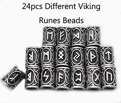 24pcs/Kit Norse Vikings Runes Beads for Beards Hair Pendants&Bracelets DIY