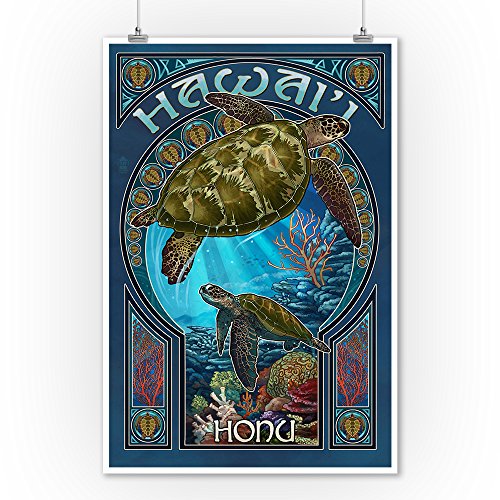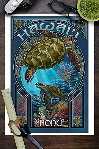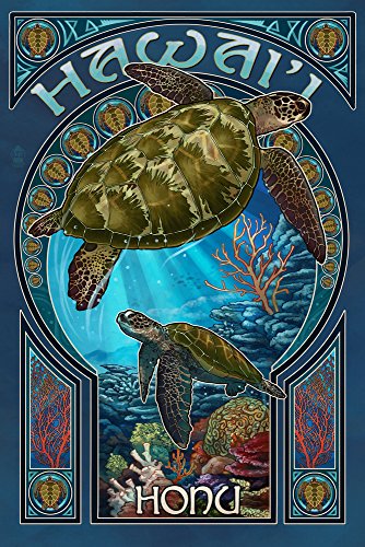 Hawaii - Sea Turtle Art Nouveau (9x12 Art Print, Wall Decor Travel Poster)