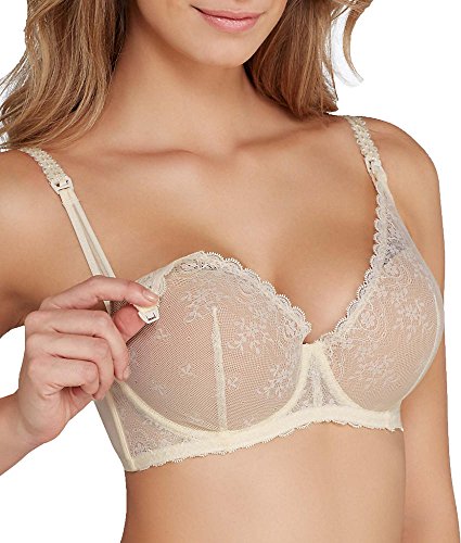 Lace nursing bra featuring scalloped trims and adjustable shoulder straps