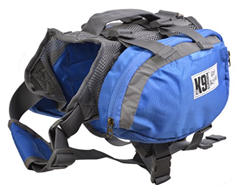 -. Binding : Misc. -. Brand : K9 Pursuits -. Feature : Light weight packs that are individually detachable from harness while on the dog / Quick release pack with multiple storage pockets / Large reflective stripes for added visibility / Light weigh mesh, breathable under harness / Be sure to check out our other listings for K9 Pursuits -. Label : K9 Pursuits -. Manufacturer : K9 Pursuits -. PackageQuantity : 1 -. ProductGroup : Pet Products -. ProductTypeName : PET_SUPPLIES -. Publisher : K9 Pursuits -. Studio : K9 Pursuits -. Title : K9 Pursuits Trail-Blazer Dog Back Pack for Hiking and Walking - Small, Medium, and Large Sizes