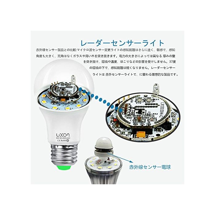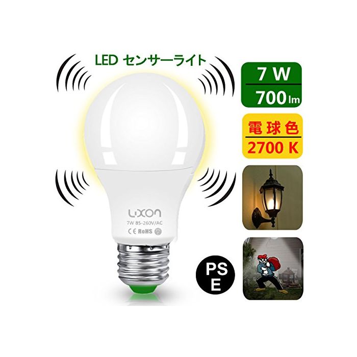 원본상품명: LED電球 センサライト led 人感センサ 自動点 明暗センサライト電球色 7W 口金直26mm 搭載レダ探知機付 省エネ 防犯「第三代」