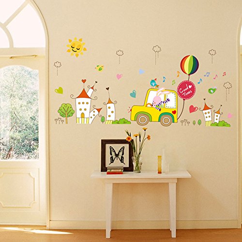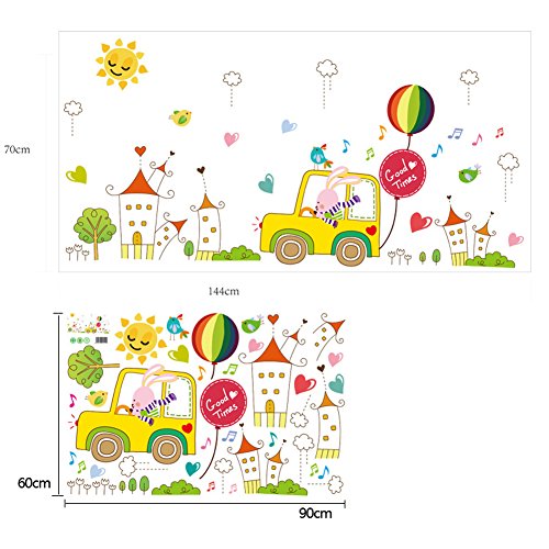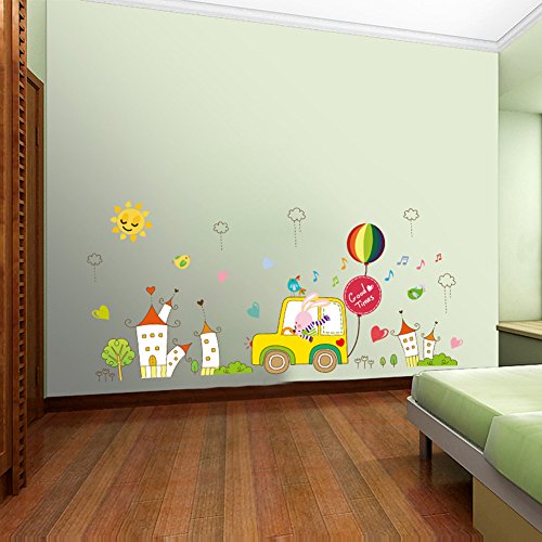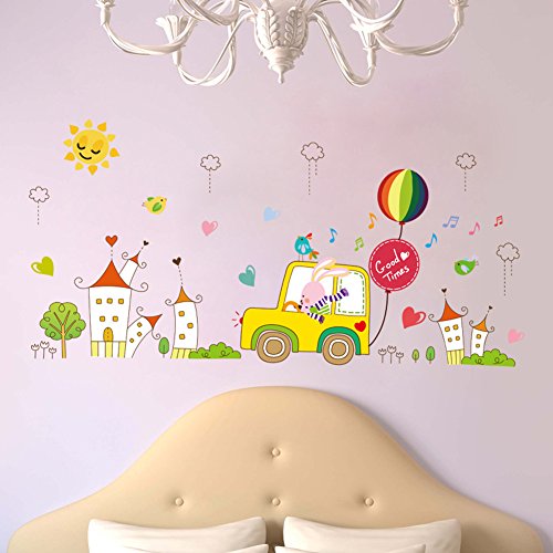 -. Title : Wallpark Cartoon Countryside Buildings Rabbit Car Driver Removable Wall Sticker Decal, Children Kids Baby Home Room Nursery DIY Decorative Adhesive Art Wall Mural