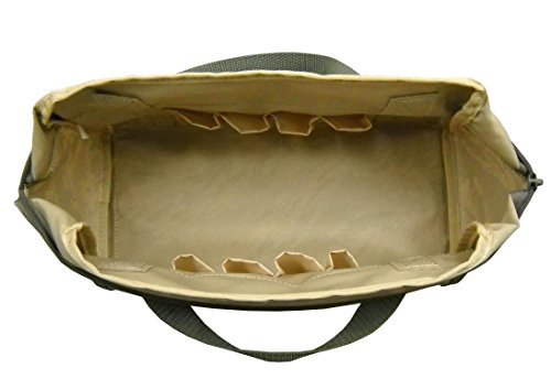 -. Binding : Misc. -. EAN : 0021676720511 -. Feature : Size: 12.25" x 5.5" x 6.5" / Constructed of 600 denier polyester material / Sturdy 1" handles and well padded at the bottom / Easy access pocket on each side of the bag / 8 bonus slots inside (could be used for shotgun shells) -. IsAutographed : 0 -. IsMemorabilia : 0 -. Label : Military Lage Company -. Manufacturer : Military Lage Company -. ProductGroup : Sports -. ProductTypeName : SPORTING_GOODS -. Publisher : Military Lage Company -. Studio : Military Lage Company -. Title : Air Force ABU Small Tool Bag -. UPC : 021676720511