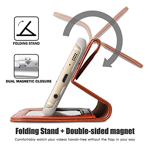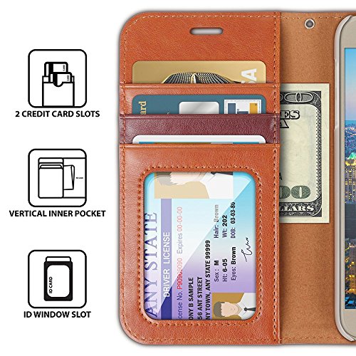 Galaxy S7 Case, TORU [Prestizio Wallet] S7 Wallet Case with [CARD SLOT][ID HOLDER][KICKSTAND][WRIST STRAP] - Premium Wristlet Leather Flip Cover for Samsung Galaxy S 7 - Brown